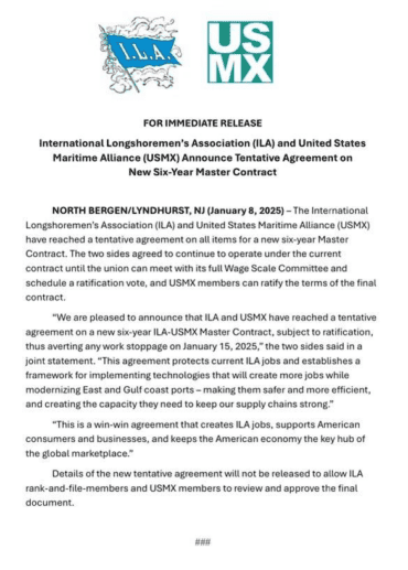 In a joint statement, the ILA and USMX shared the following: